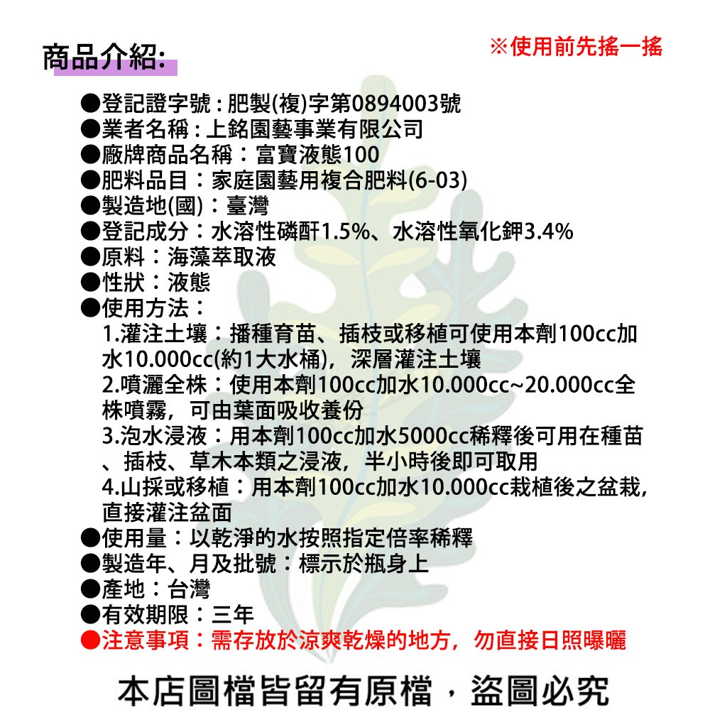 【蔬菜工坊】富寶液態100(原富寶開根100) 100CC-2入/組