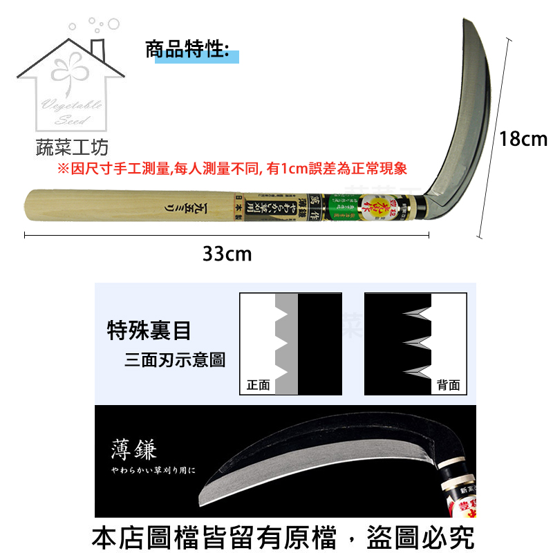 多用鐮刀丸型刀刃(薄鎌)195mm(HT-0368)