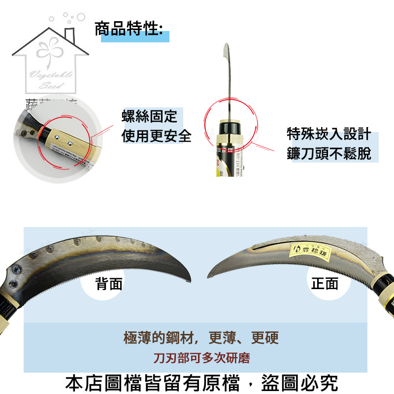 4.特殊崁入設計,鐮刀頭不鬆脫