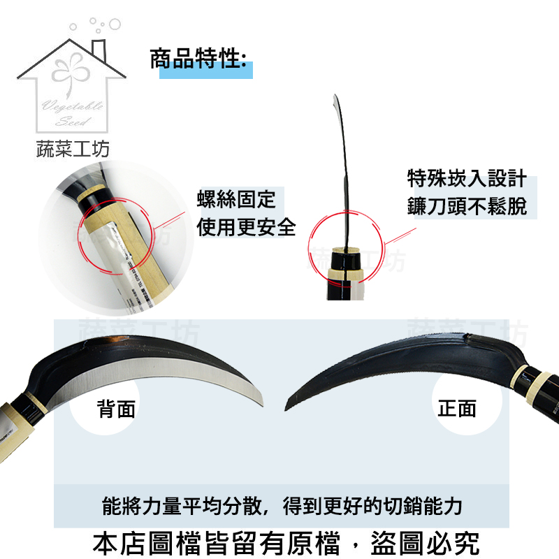 3.特殊崁入設計,鐮刀頭不鬆脫