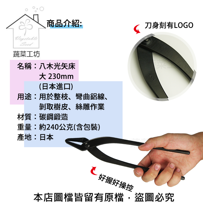 用於整枝、彎曲鋁線、剝取樹皮、絲雕作業