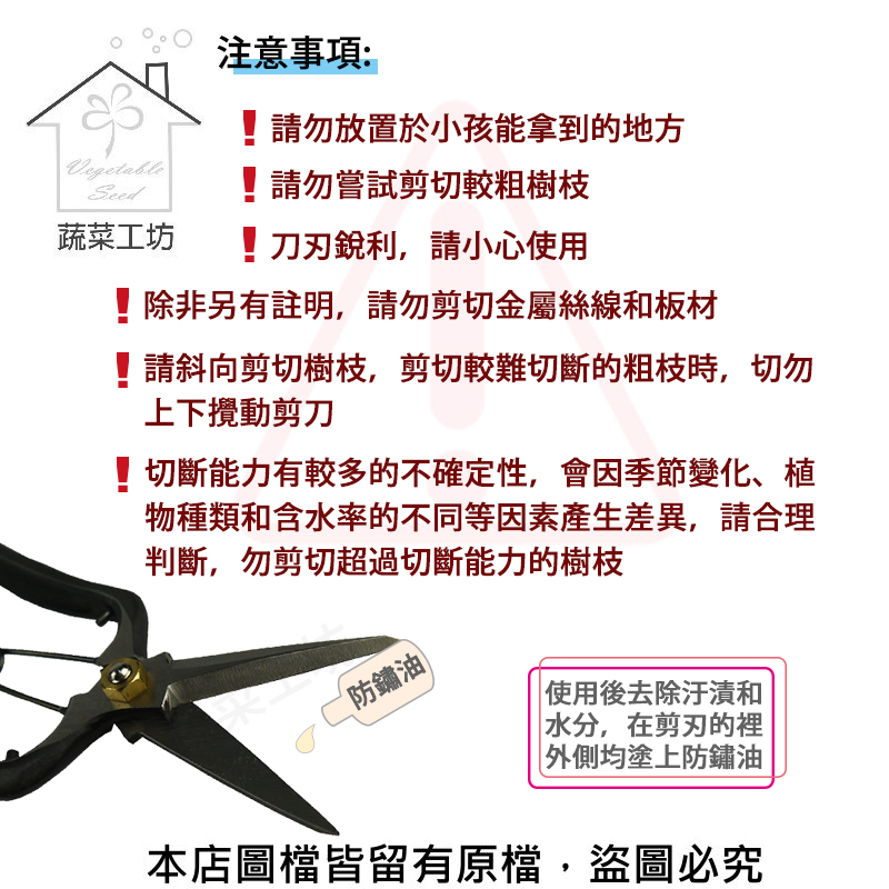 7.使用後去除汙漬和 水分,在剪刃的裡 外側均塗上防鏽油