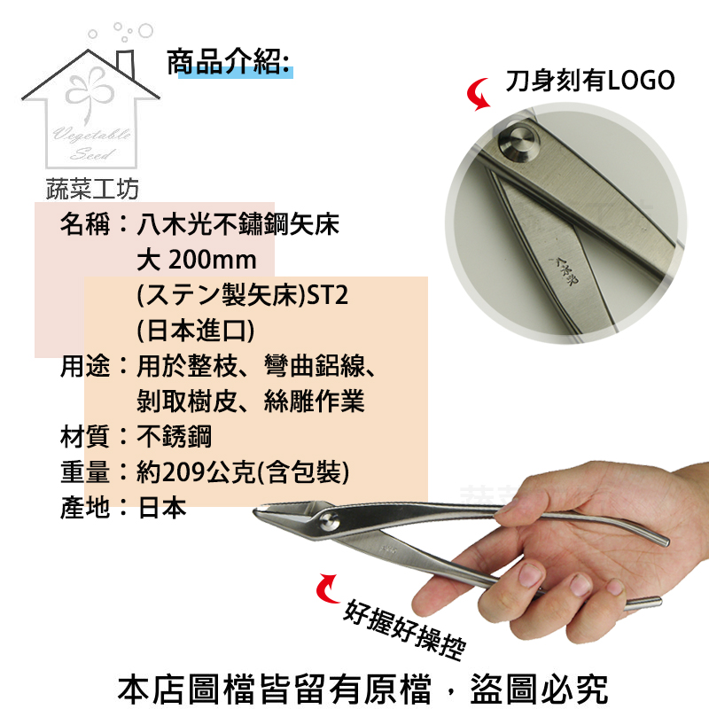 用於整枝、彎曲鋁線、剝取樹皮、絲雕作業