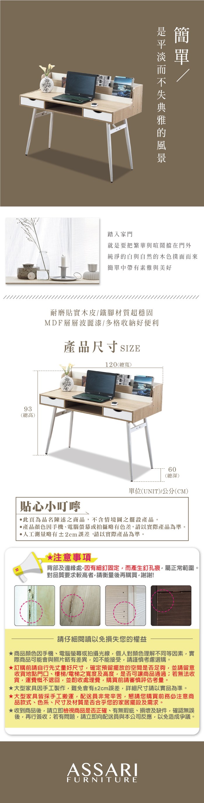 ASSARI-凱絲多格書桌(寬120x深60x高101cm)