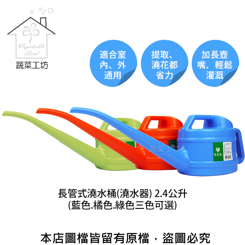 長管式澆水桶(澆水器) 2.4公升(藍色.橘色.綠色隨機出貨不挑色)