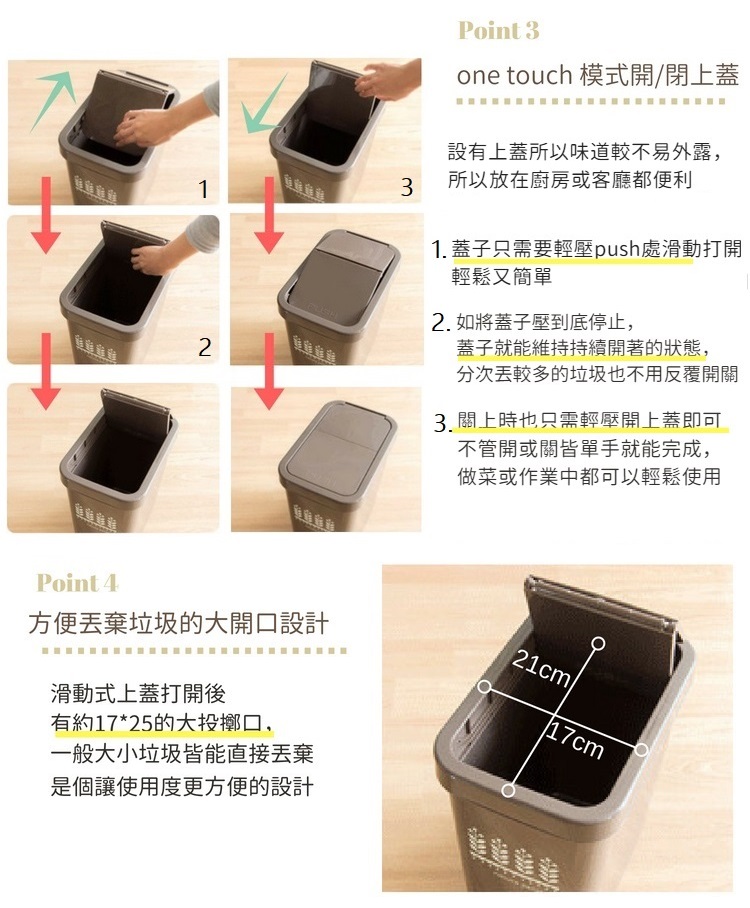 【this-this】滑蓋式垃圾桶18L-可可棕色