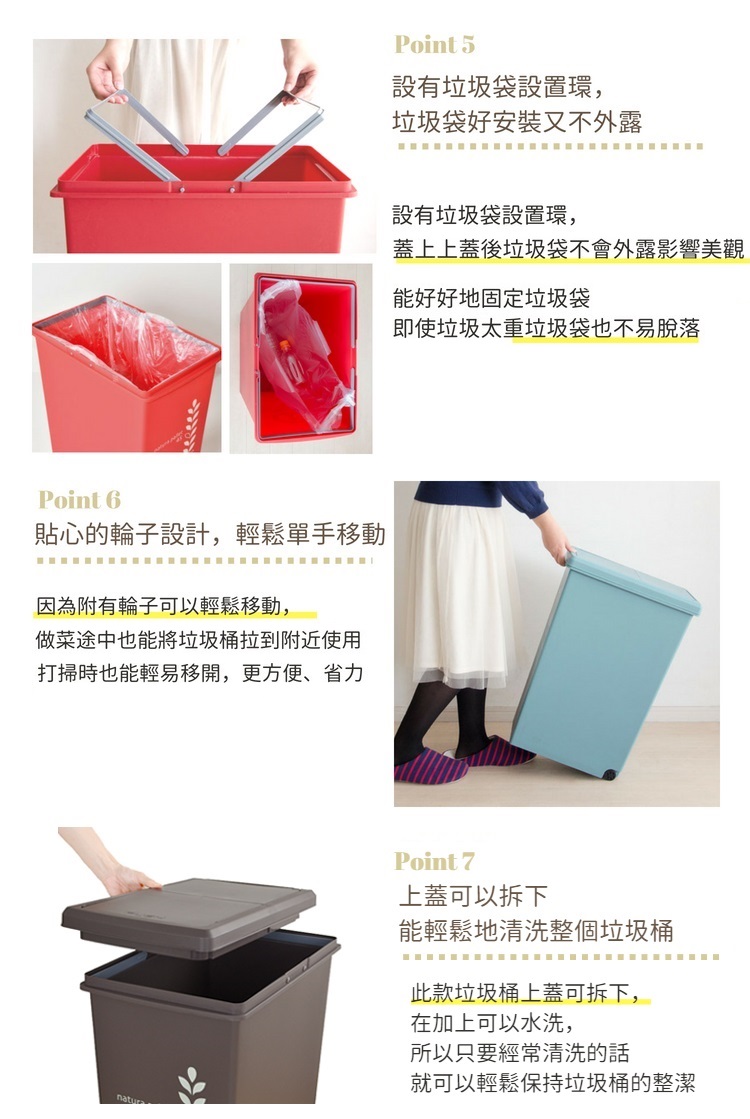 二分類掀蓋式垃圾桶75L - 四色 紅色