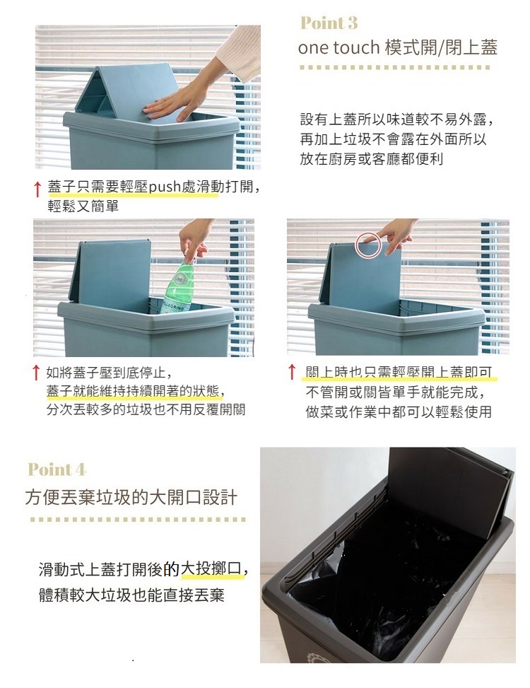 【this-this】滑蓋式垃圾桶30L-水藍色