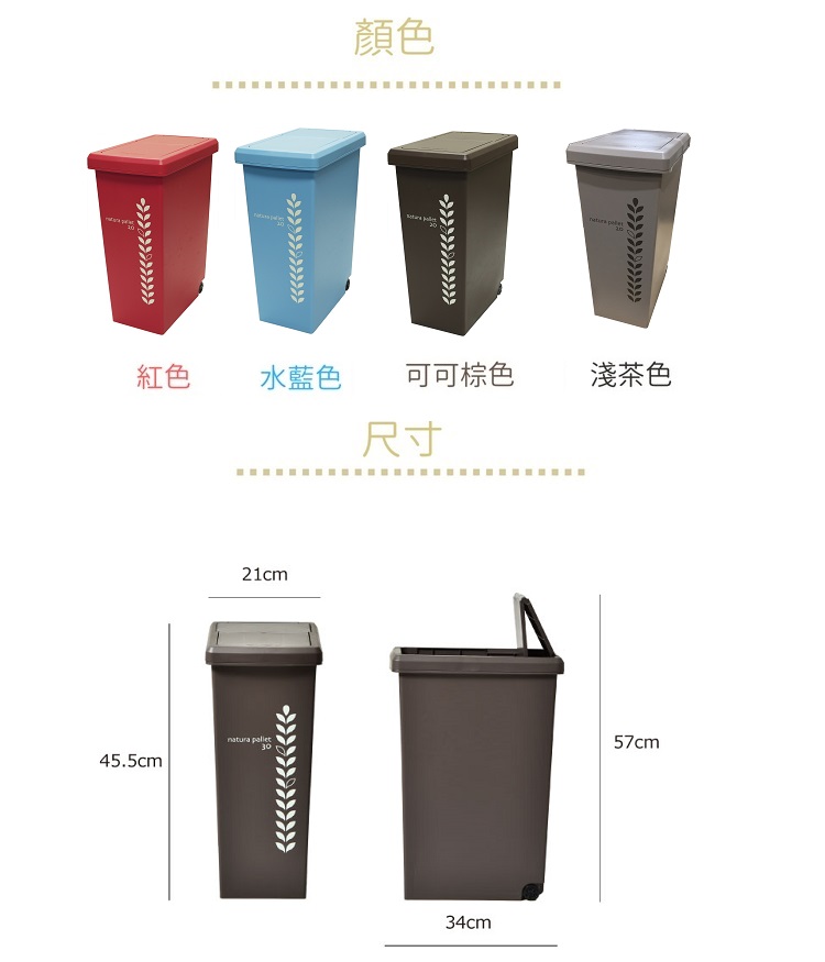 diese-diese|natura pallet 滑蓋式垃圾桶30L - 四色
