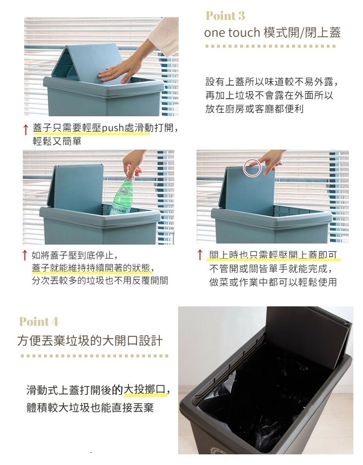 【this-this】滑蓋式垃圾桶18L-水藍色