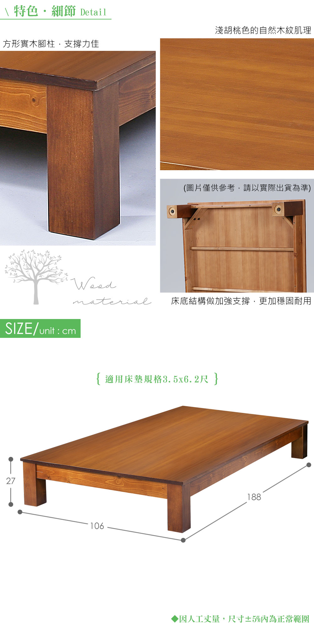 ● 床底結構做加強支撐,使其更加穩固耐用,使用上也更安全