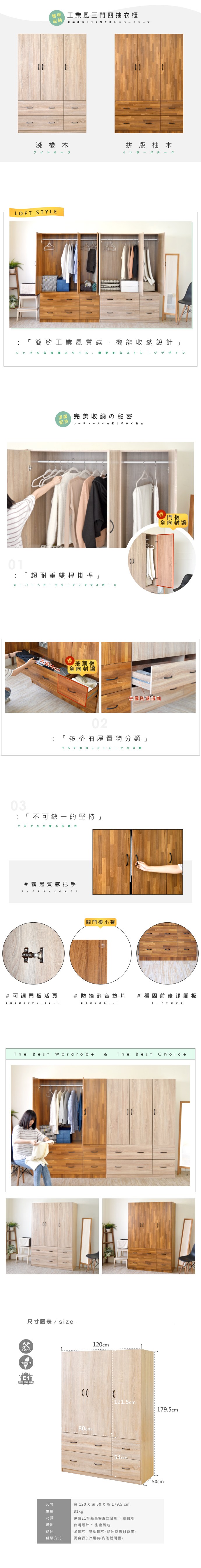 《HOPMA》美背歐森三門四抽衣櫃 台灣製造 衣櫥 抽屜櫃 衣物收納櫃-淺橡(漂流)木