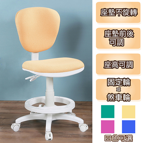 座面固定不會旋轉,免除了家長所擔憂之旋轉帶來的危險以外,更能讓學童穩穩的安坐在椅子上,不會因旋轉嬉戲造成不專心,更避免椅背旋轉撞到桌面的情形!