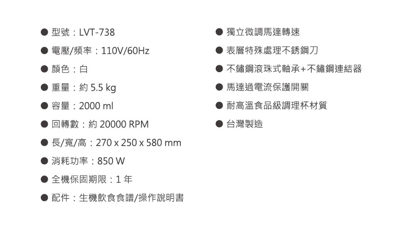 【貴夫人】生機博士全營養調理機(LVT-738)