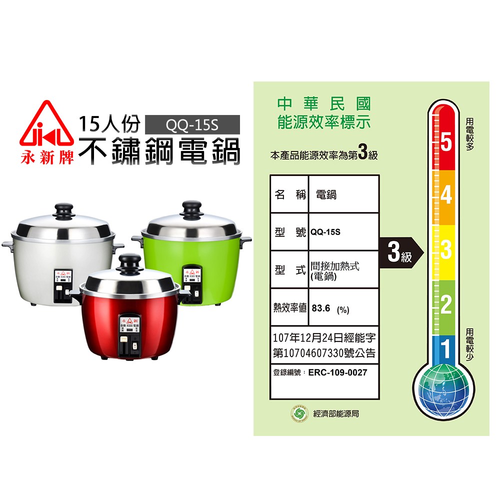 【永新牌】不鏽鋼15人份電鍋(QQ-15S)綠