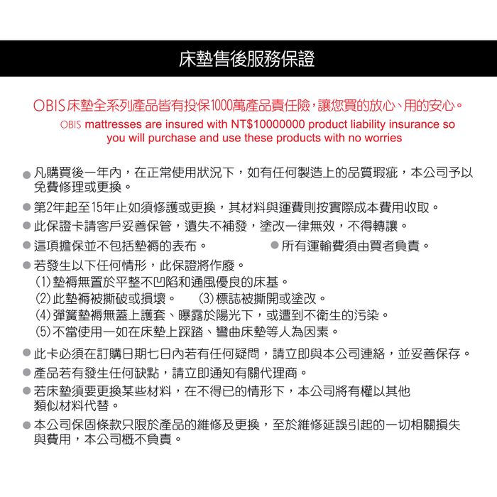 【obis】晶鑽系列_MONET二線獨立筒無毒床墊-雙人(6尺*7尺)