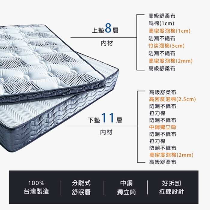 【obis】Gemini-雙層可拆式獨立筒床墊單人3.5X6.2尺_活