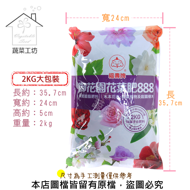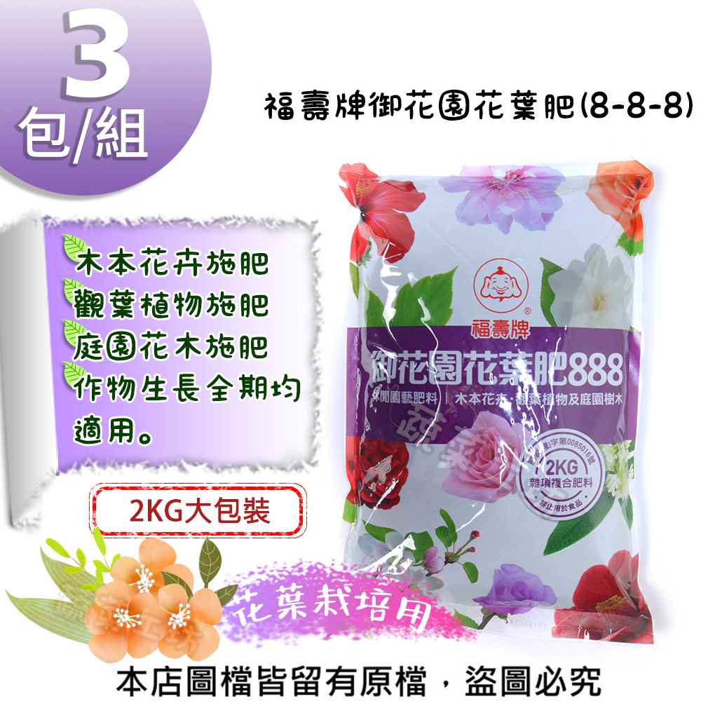商品名稱:福壽牌御花園花葉肥(8-8-8)2公斤 - 3包/組