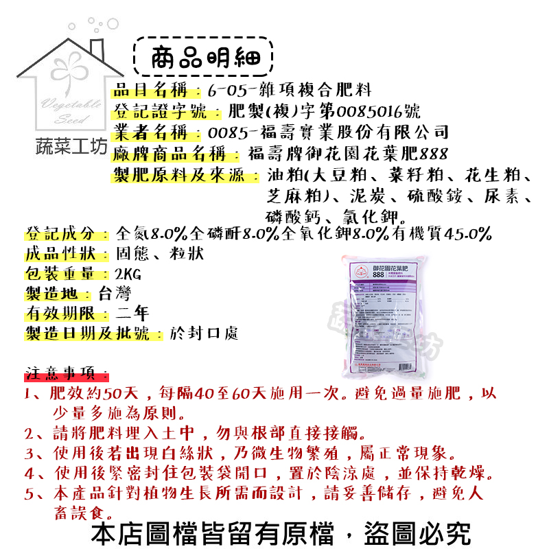 廠牌商品名稱: 福壽牌御花園花葉肥888