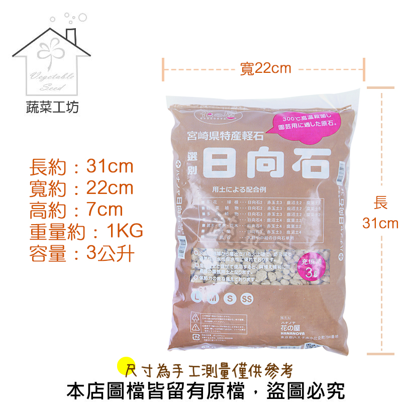 商品名稱:花之屋日向石3公升 - 中粒 -2包/組