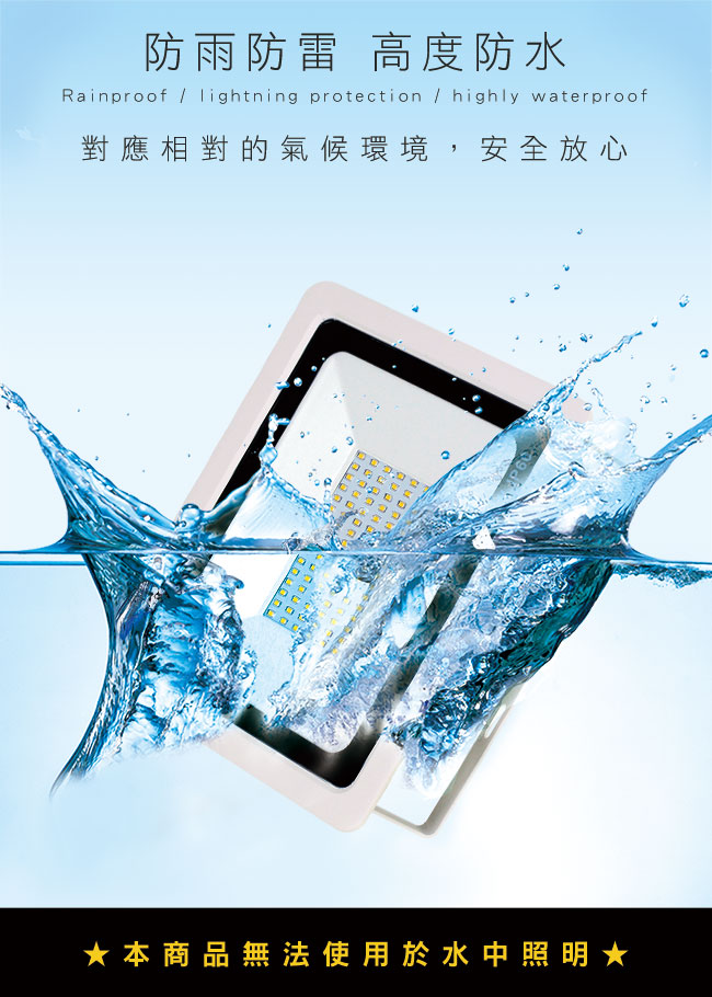 DIY戶外超薄LED泛光燈100W黃光3000K洗牆燈/探照燈/投射燈220V