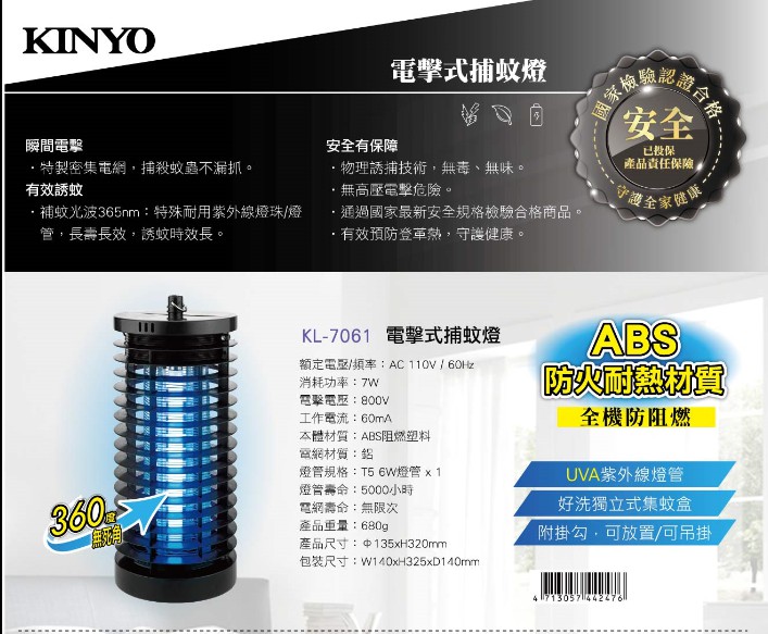 KINYO KL-7061電擊式捕蚊燈7W