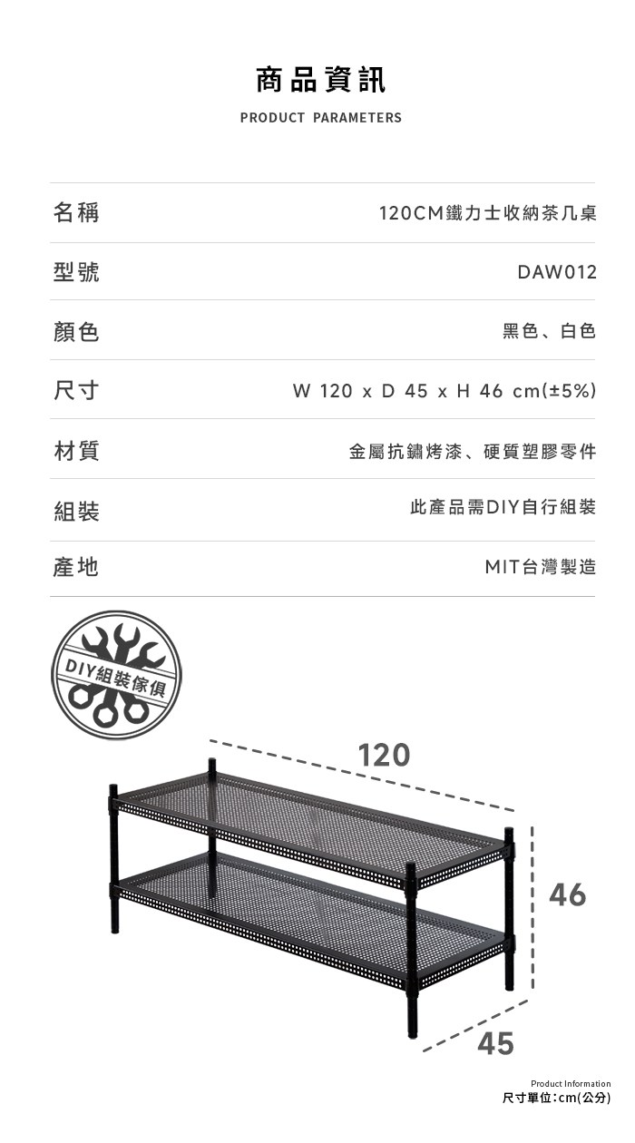 特力屋 烤漆二層架寬122*深60*高45公分(白)