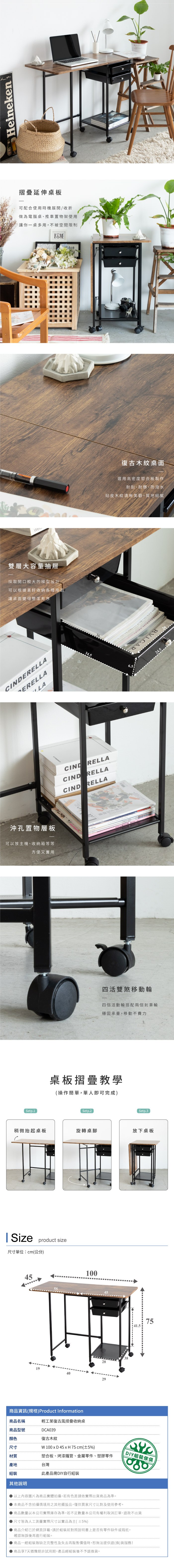 【Amos】輕工業復古風摺疊收納桌復古木紋