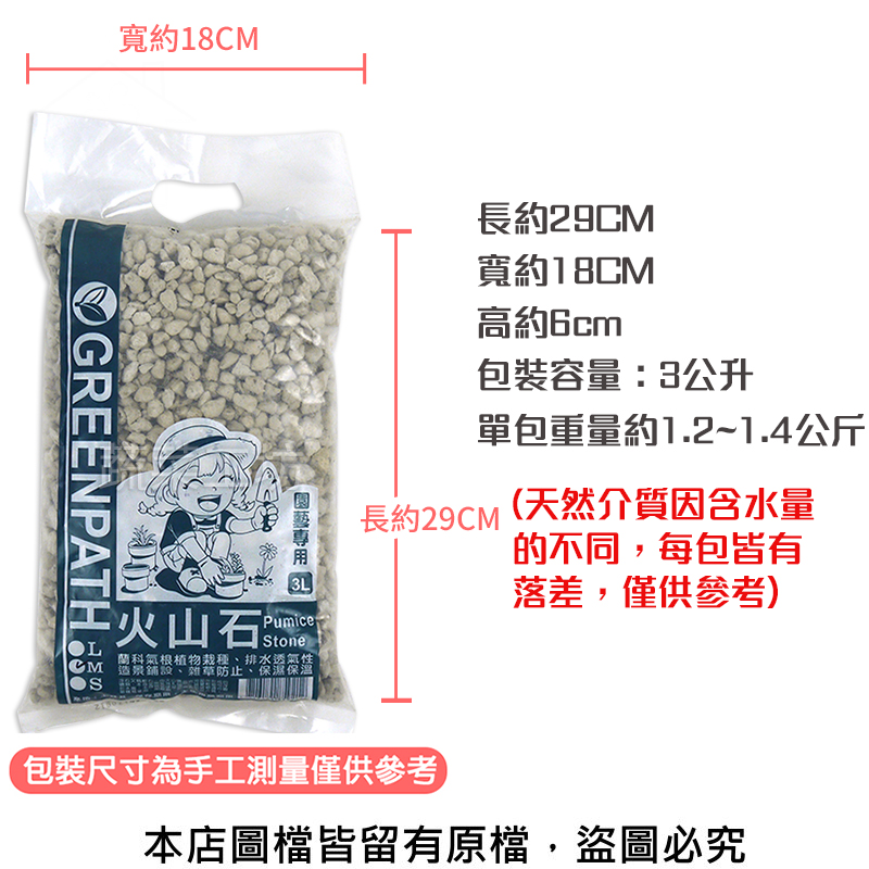 單包重量約1.2~1.4公斤(天然介質因含水量的不同,每包皆有落差,僅供參考)