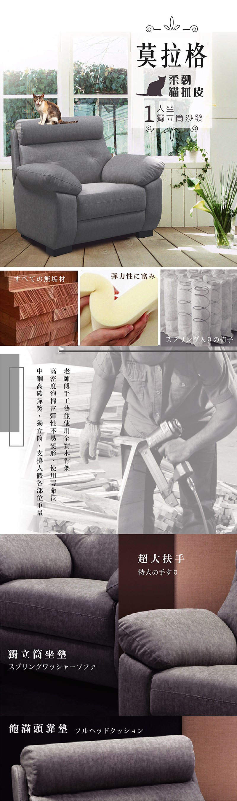 【UHO】莉亞-貓抓皮單人沙發 -運費另計214淺灰