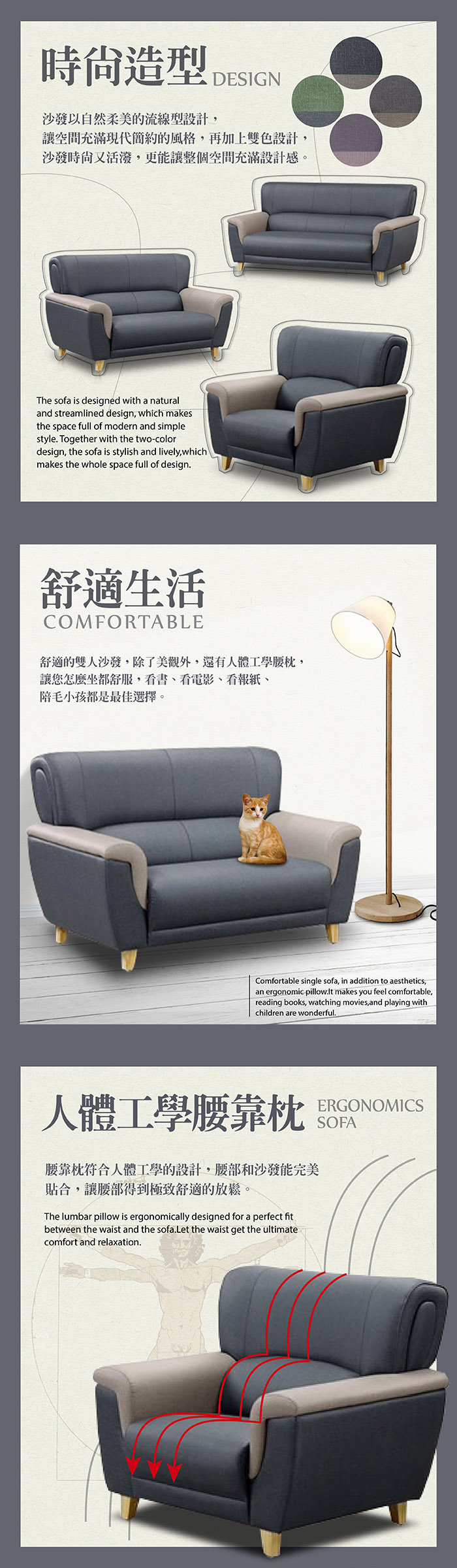 伊登貓抓布沙發 兩人 亞麻灰