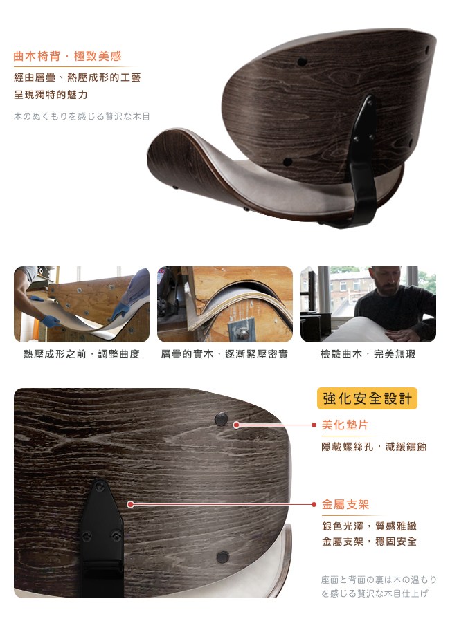 ・曲木工藝的特質,外觀上可能會有小木痕,或天然的木結、木紋,這不影響結構,使用上並無問題。