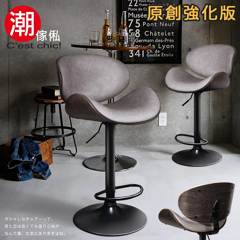 【C'est Chic】Royal Madrid 皇家馬德里吧台椅(皮質)-灰