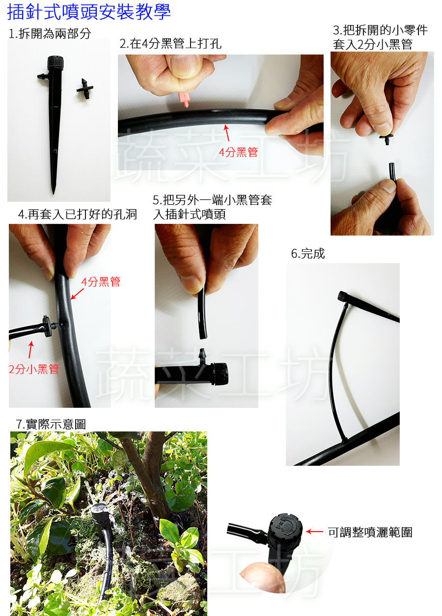 ★冬天溫度低小黑管較硬不好裝配,可先使用滴架尾部尖端先套入小黑管擴孔,再行套入滴架,此材質管徑較厚,較為耐壓且防曬耐用。