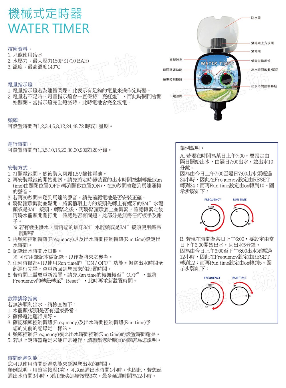 2.水壓力:最大壓力150PSI(10 BAR)