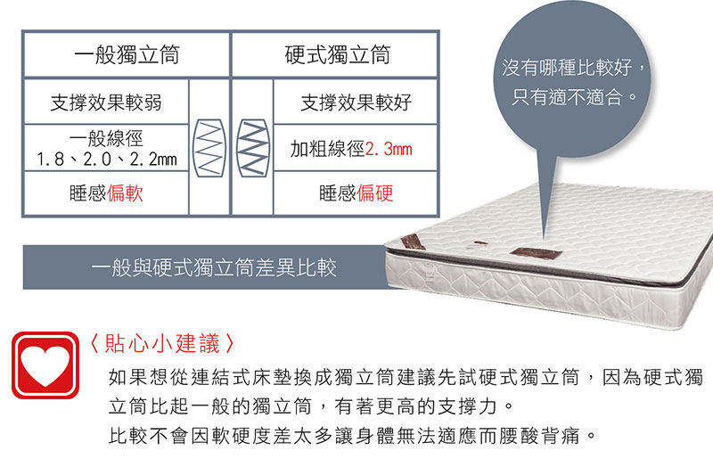 【UHO】卡莉絲名床-日式和風三線3.5尺單人硬式護背獨立筒床墊