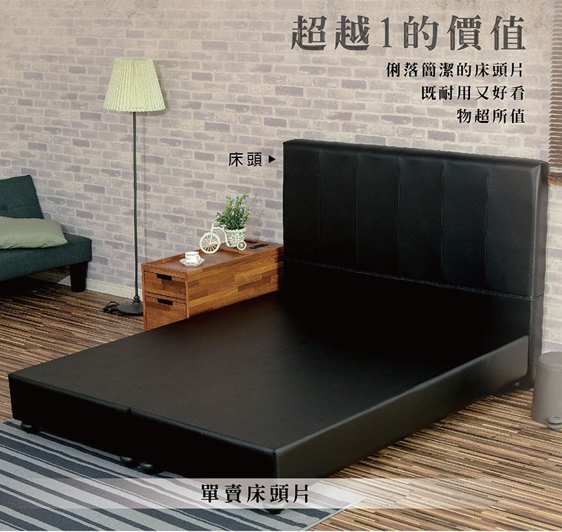 柏蒂家居-利茲3.5尺單人皮革床頭片實木床架