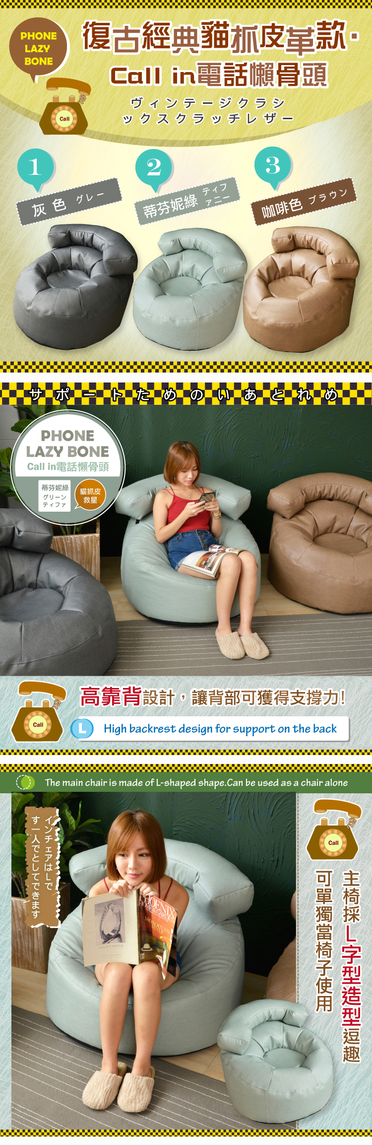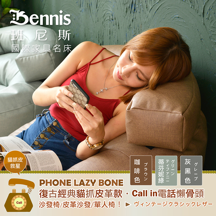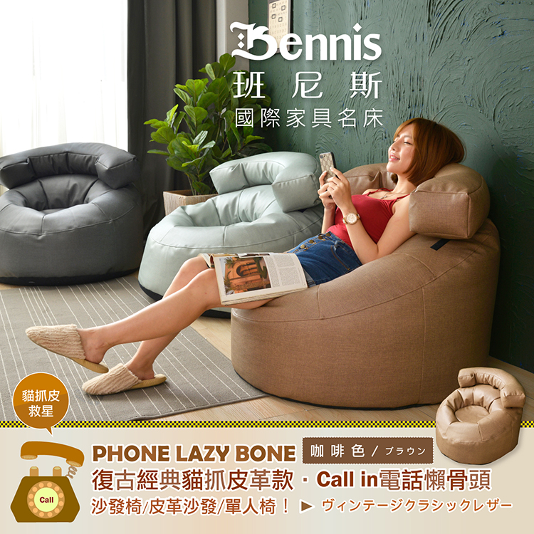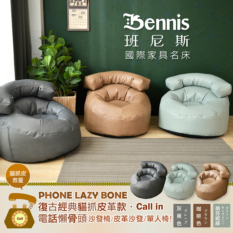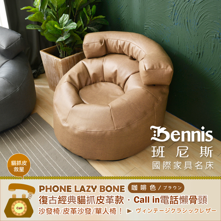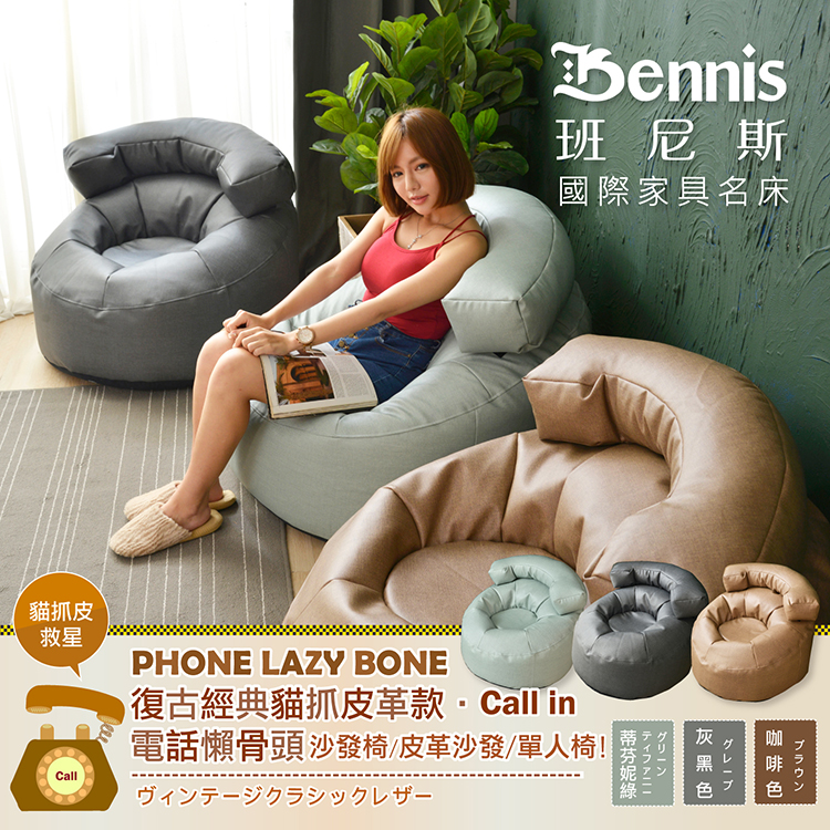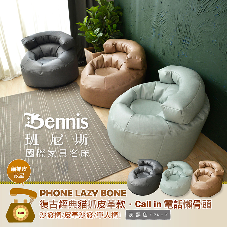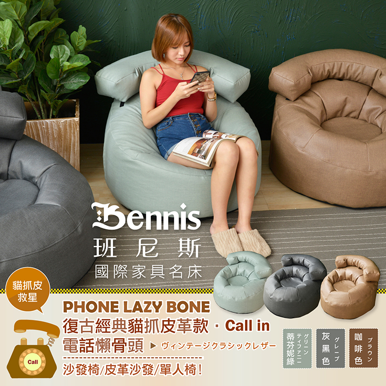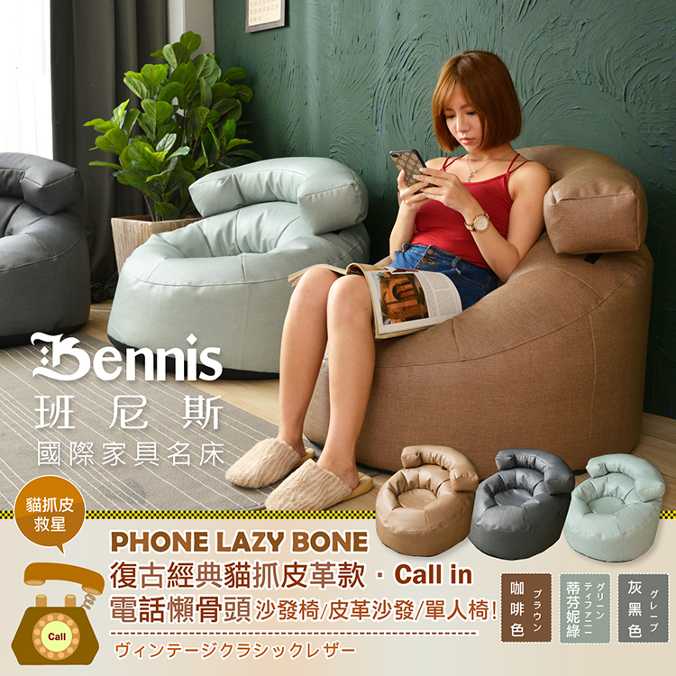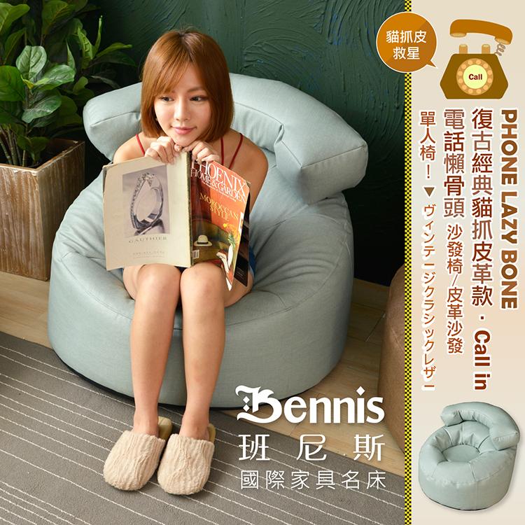 ●商品名稱:【班尼斯】【貓抓皮革‧Call in電話懶骨頭】懶骨頭沙發椅/皮革沙發/單人造型椅