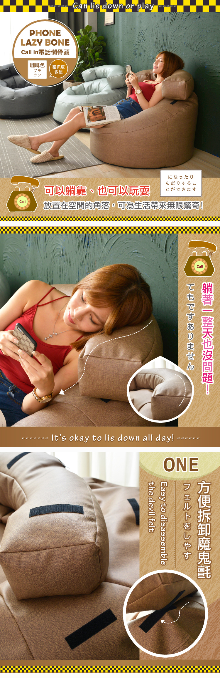 ‧獨特電話筒設計,無論靠手、斜躺~更加舒適!