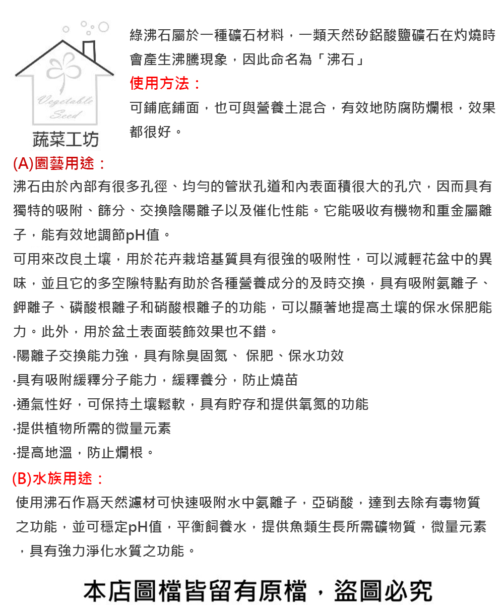 ‧陽離子交換能力強,具有除臭固氮、 保肥、保水功效