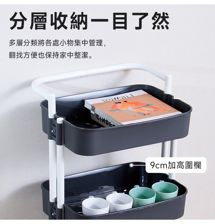 100%台灣製 大台面多功能三層圍邊工具餐車/手推車/置物架-優雅白