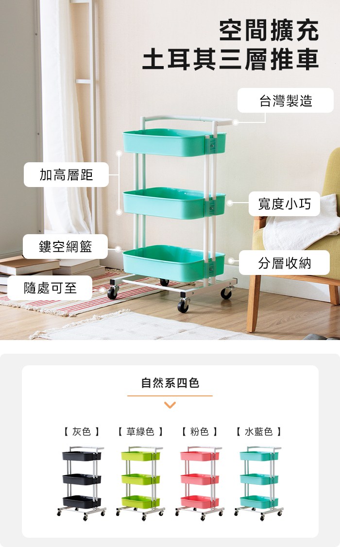 特力屋 烤漆 三層收納推車 置物推車 綠