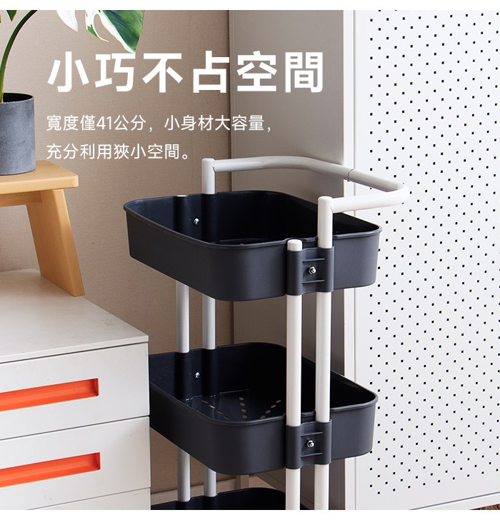 手扶三層置物收納推車 置物架 零食置物架 手推車 美容置物推車 廚房收納 辦公收納 碳鋼材質-JM