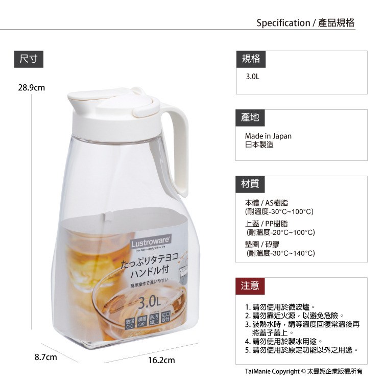 大容量,冷熱皆宜,無論是直接沖泡熱茶,或冷藏果汁、開水,飲用風味佳,一年四季皆適用,全家暢飲到底。