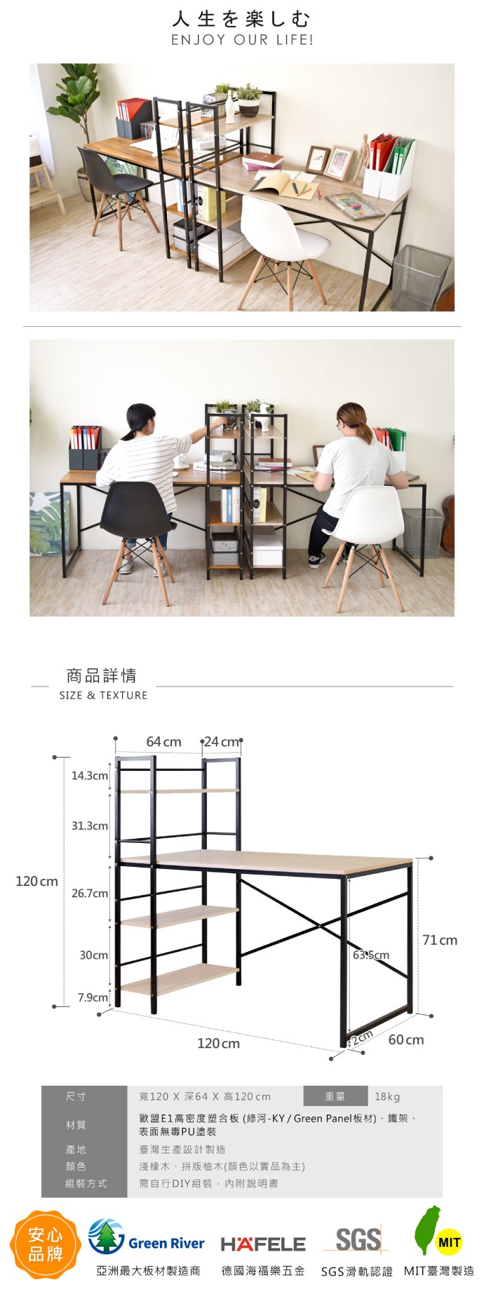 【HappyLife】實木升降雙層書架書桌 120公分 Y12062藍白