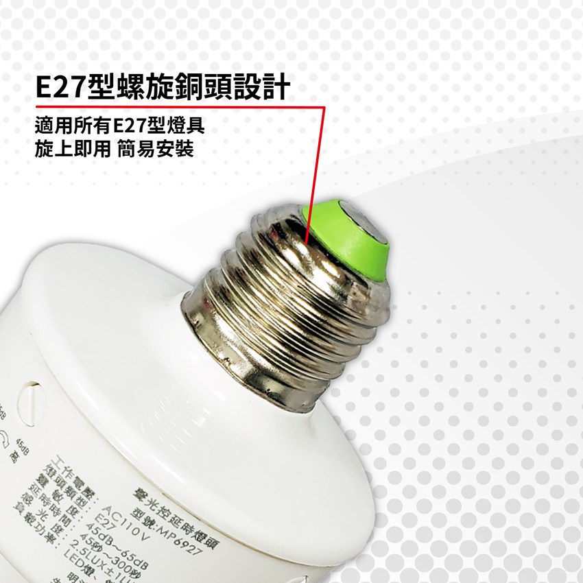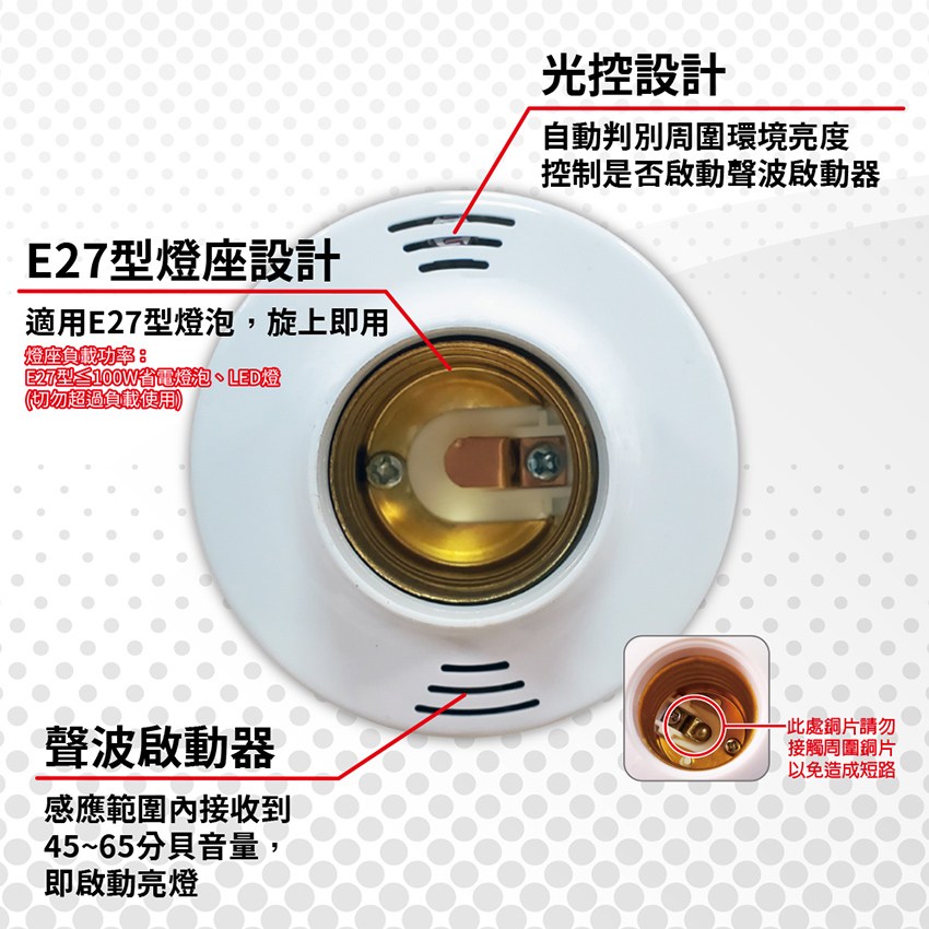 - 適用:E27型,≦100W省電燈泡、LED燈泡(請勿超過負載)
