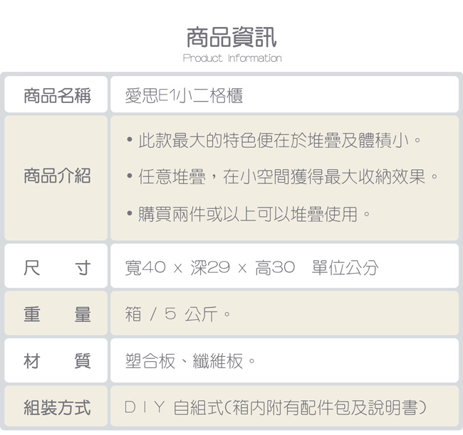 TZUMii 家居E1二格空櫃/二層櫃/收納櫃41.5*30*60cm