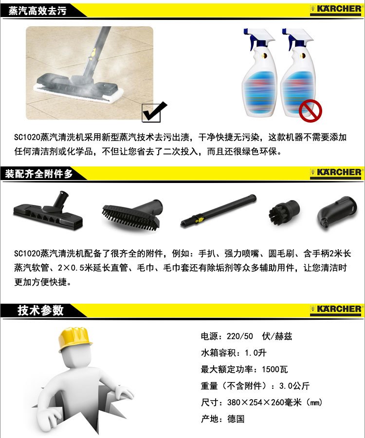 德國 KARCHER 凱馳 蒸汽式清洗機 SC1020