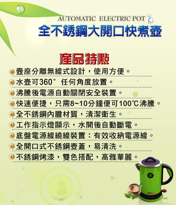 Kolin歌林 1.8L不鏽鋼雙層防燙快煮壺 KPK-LN180