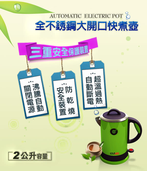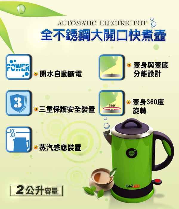 [鍋寶]316不鏽鋼防燙快煮壺2L-綠